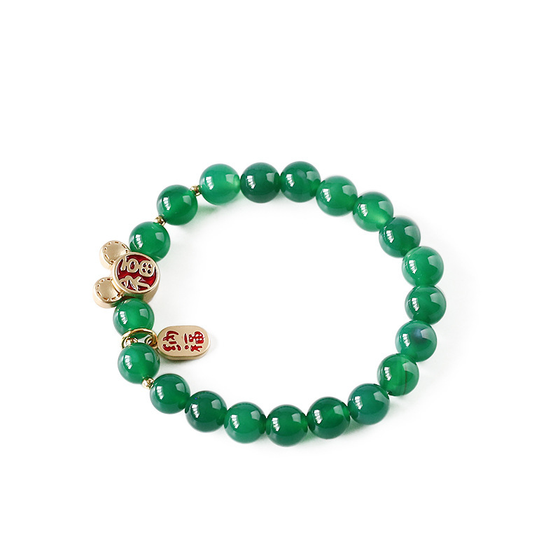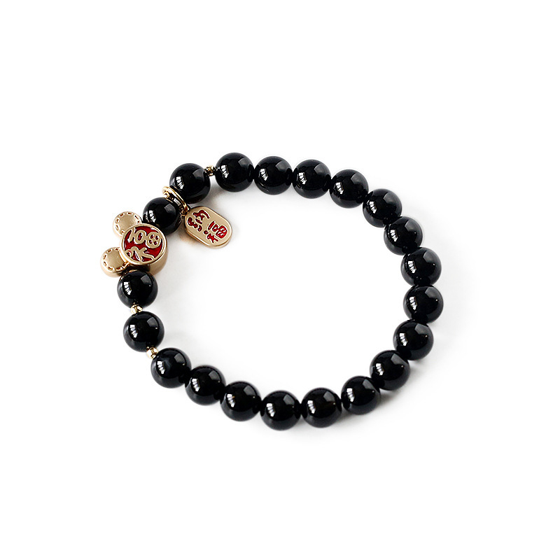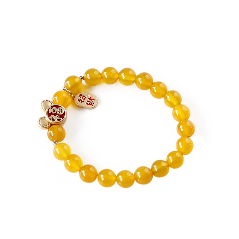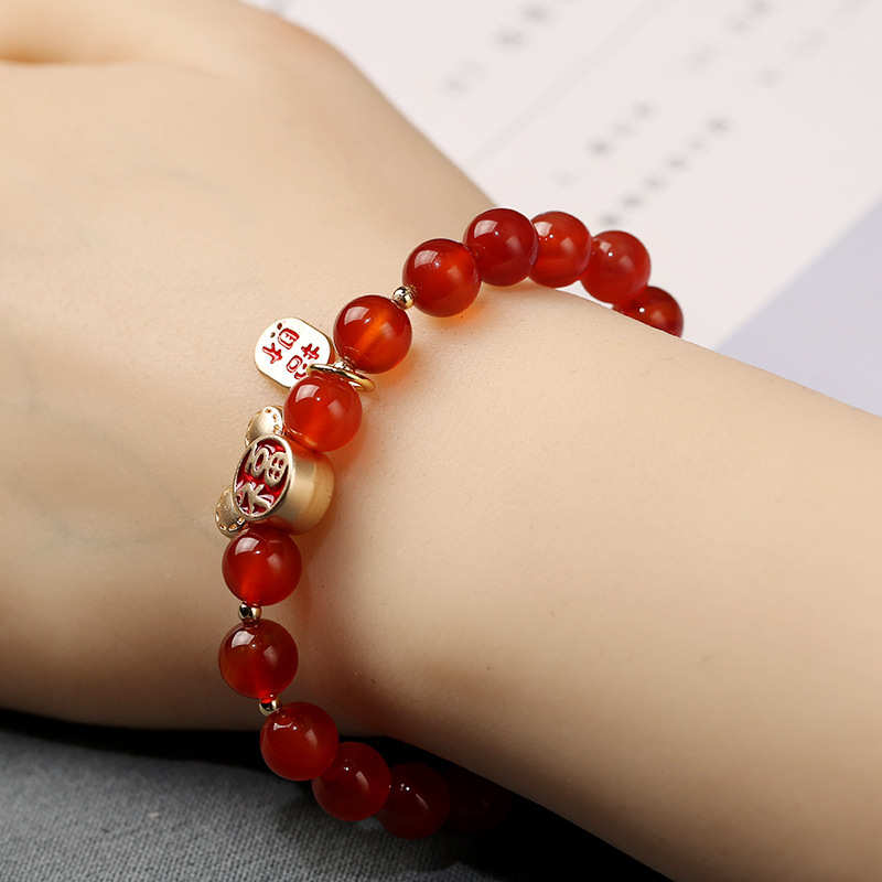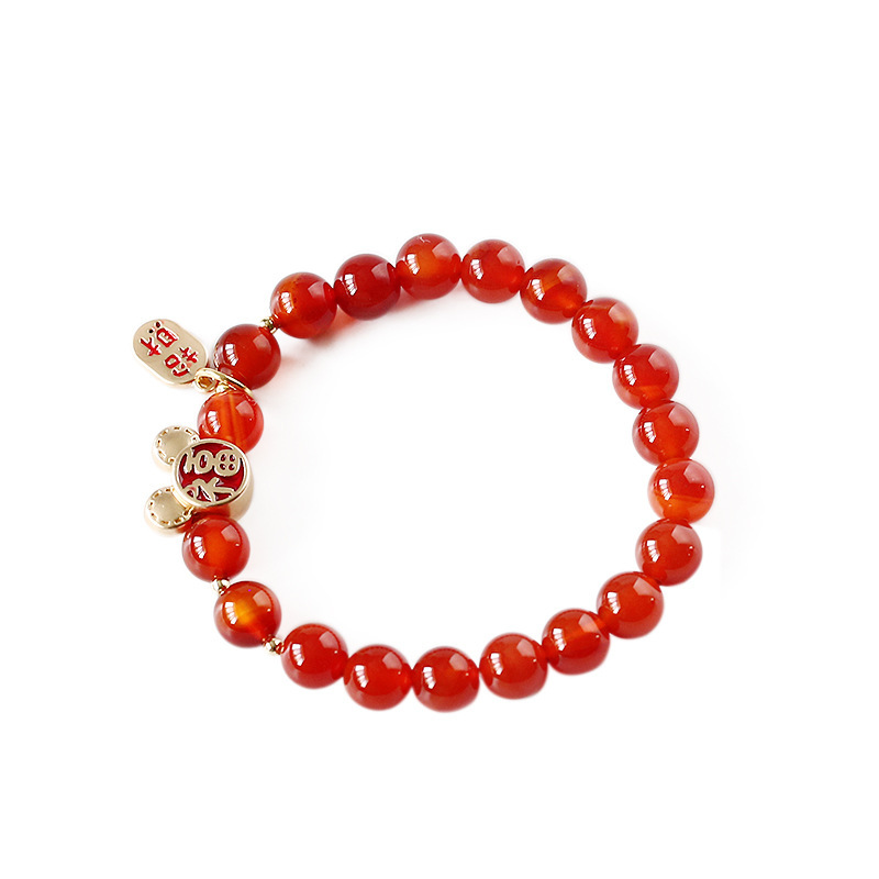 設計師款天然紅瑪瑙手鍊搭配福氣招財鼠轉運珠手串鍍14K金水晶手鍊