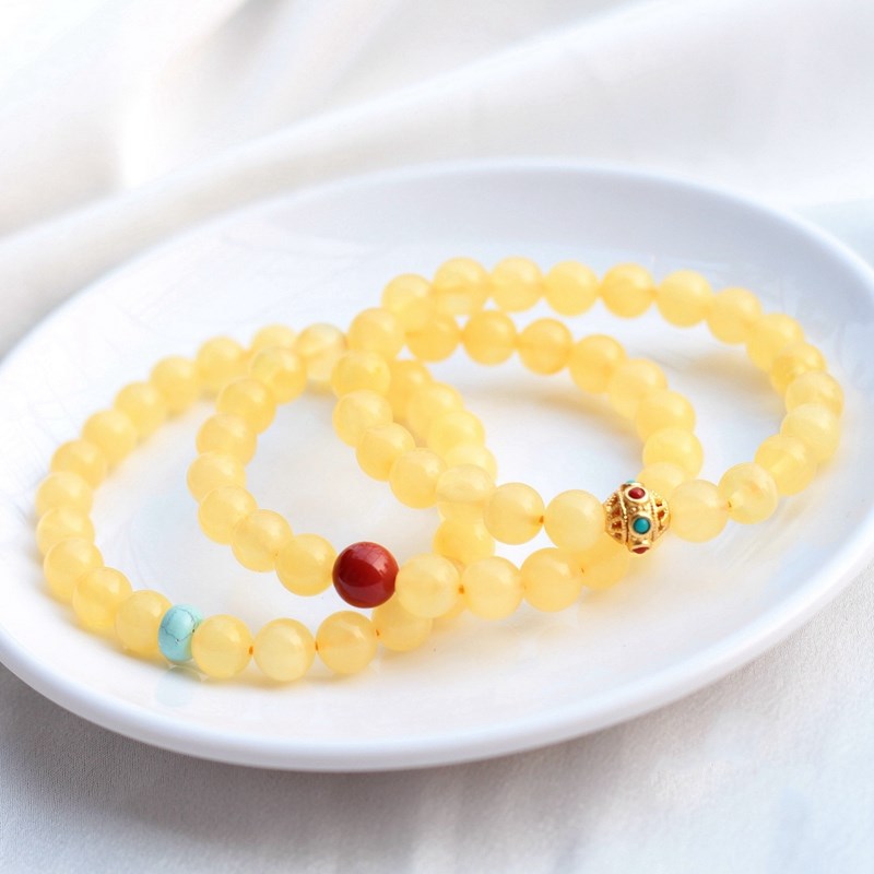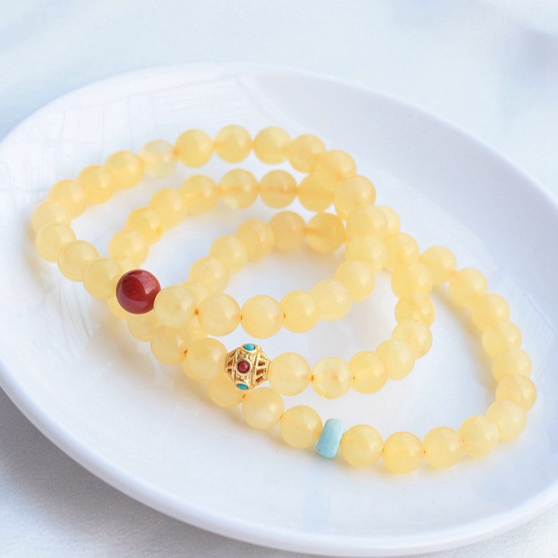 | 款式 | 蜜蠟搭配南紅圓珠, 蜜蠟搭配綠古法鍍金銀珠, 蜜蠟搭配綠松石隔珠 |