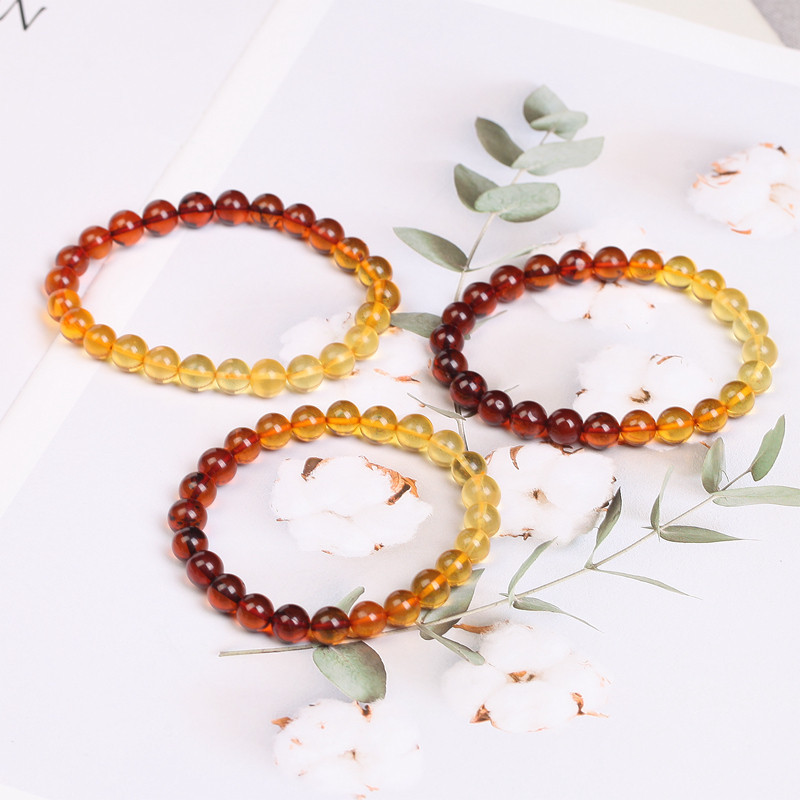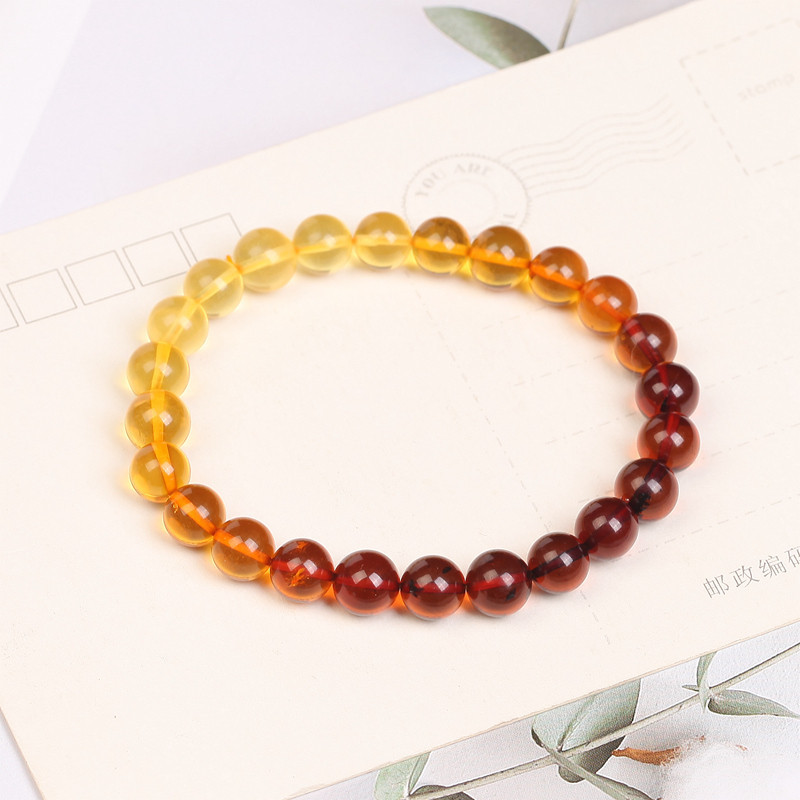 天然名貴漸變色琥珀蜜蠟單圈手鍊手串手工手穿琥珀時尚女佛珠手串手鍊 (6mm琥珀圓珠)