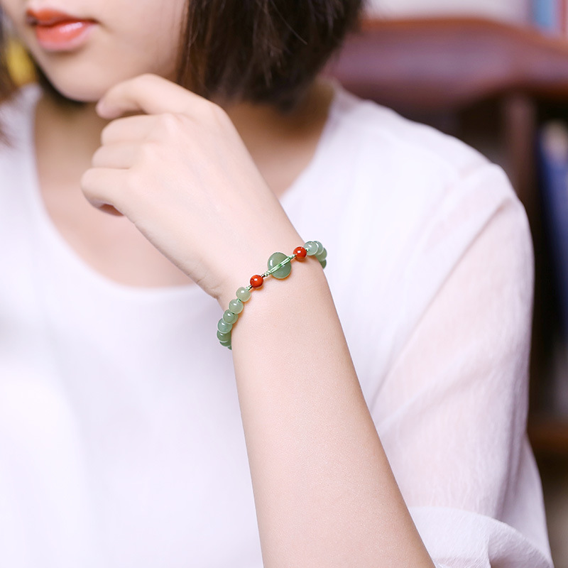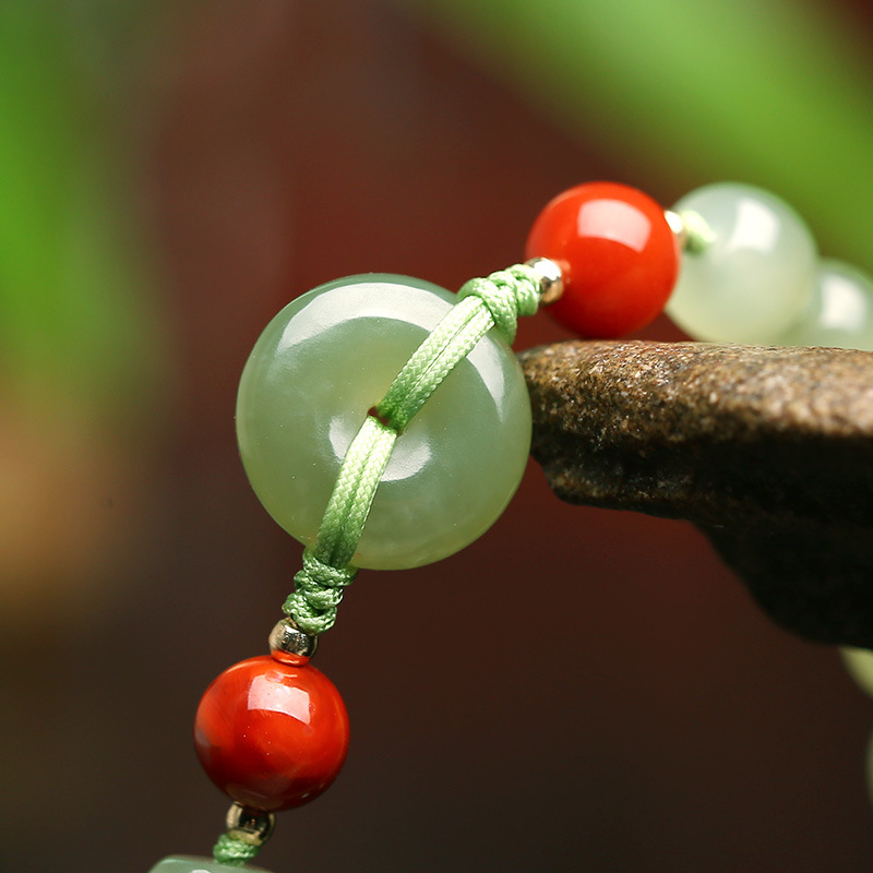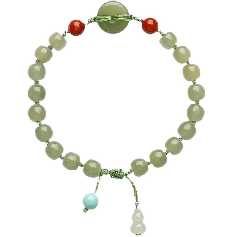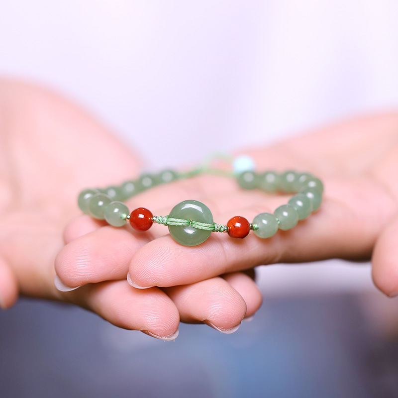 【7A級和田玉手鍊】天然名貴新疆鴨蛋青和田玉6mm原創溫婉氣質女款和田玉手鍊搭配平安扣玉珠手鍊手串 (6mm)