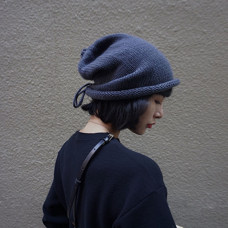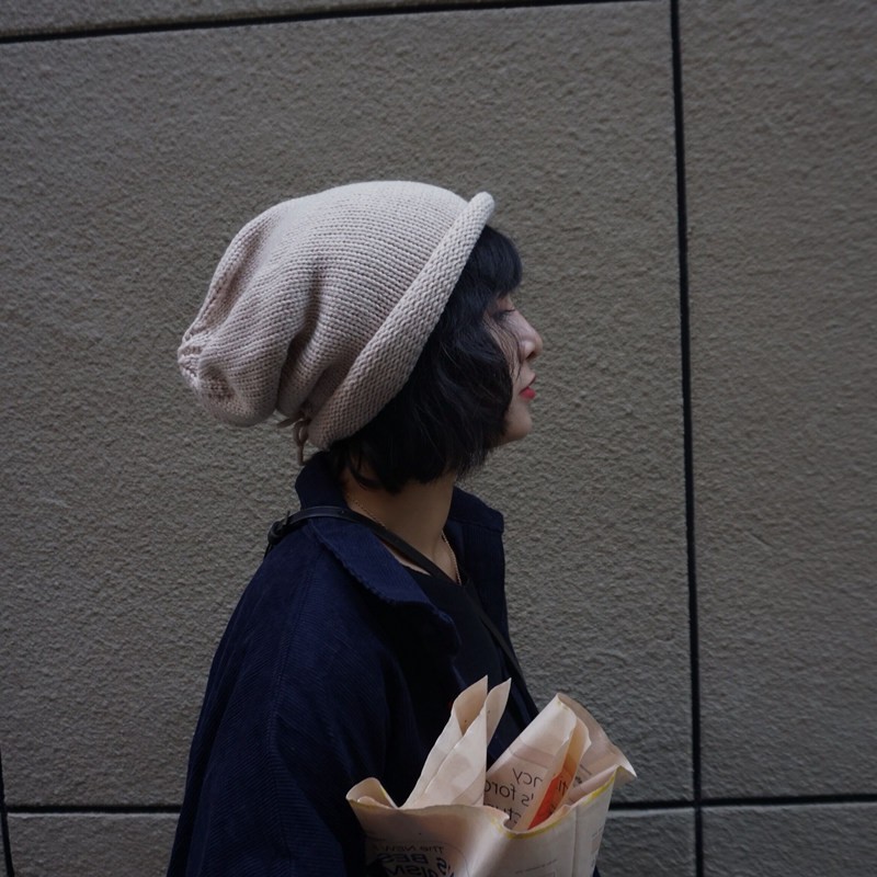 【針織毛線捲邊堆堆帽】【后抽繩設計】日系小眾女帽后抽繩可調毛線帽純色保暖護耳卷邊堆堆帽