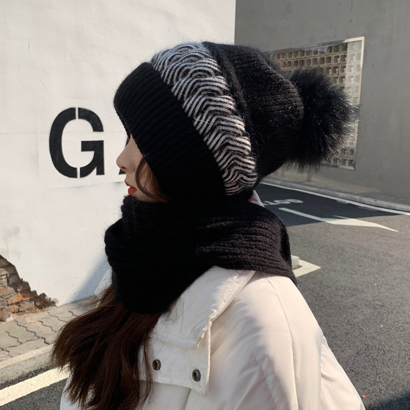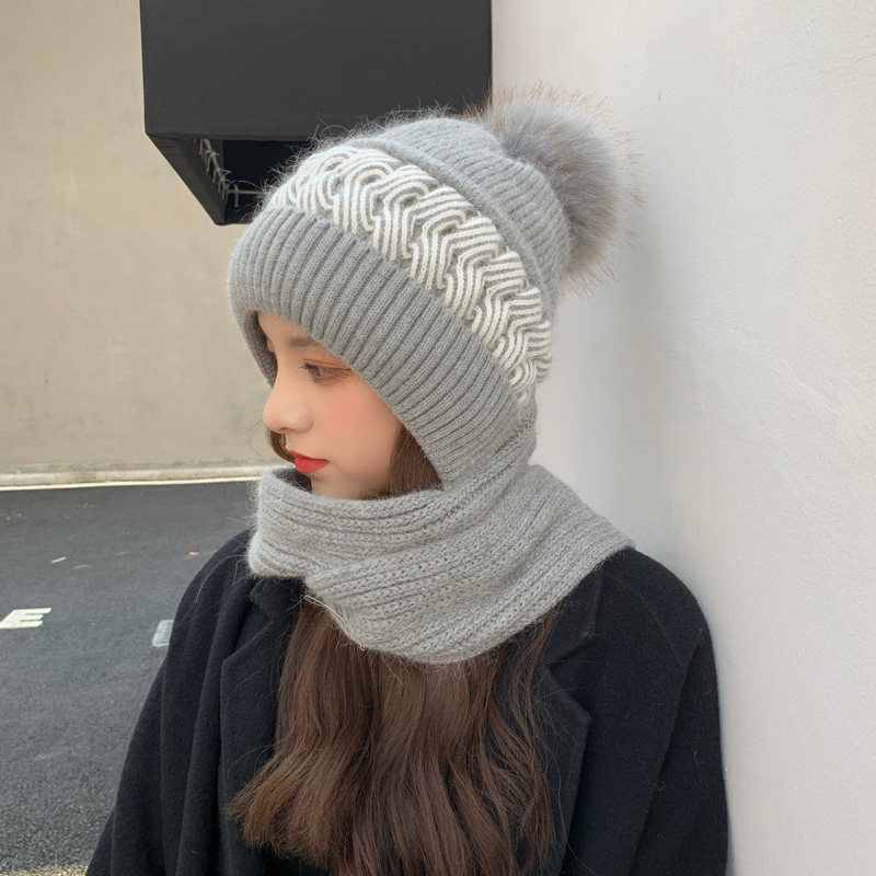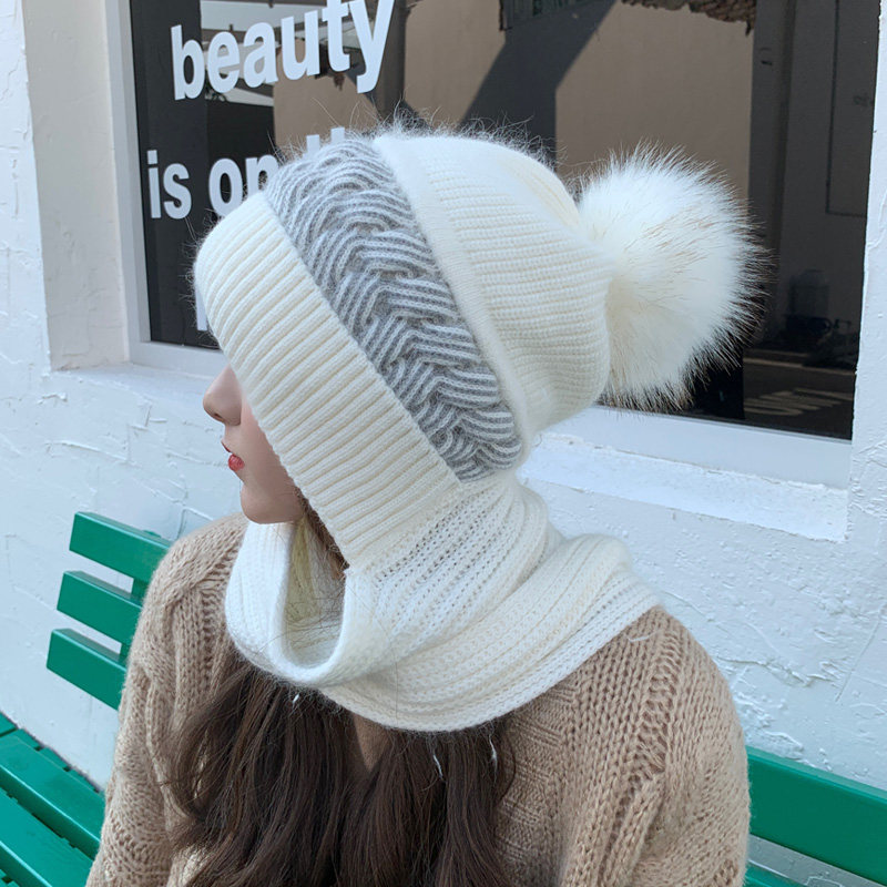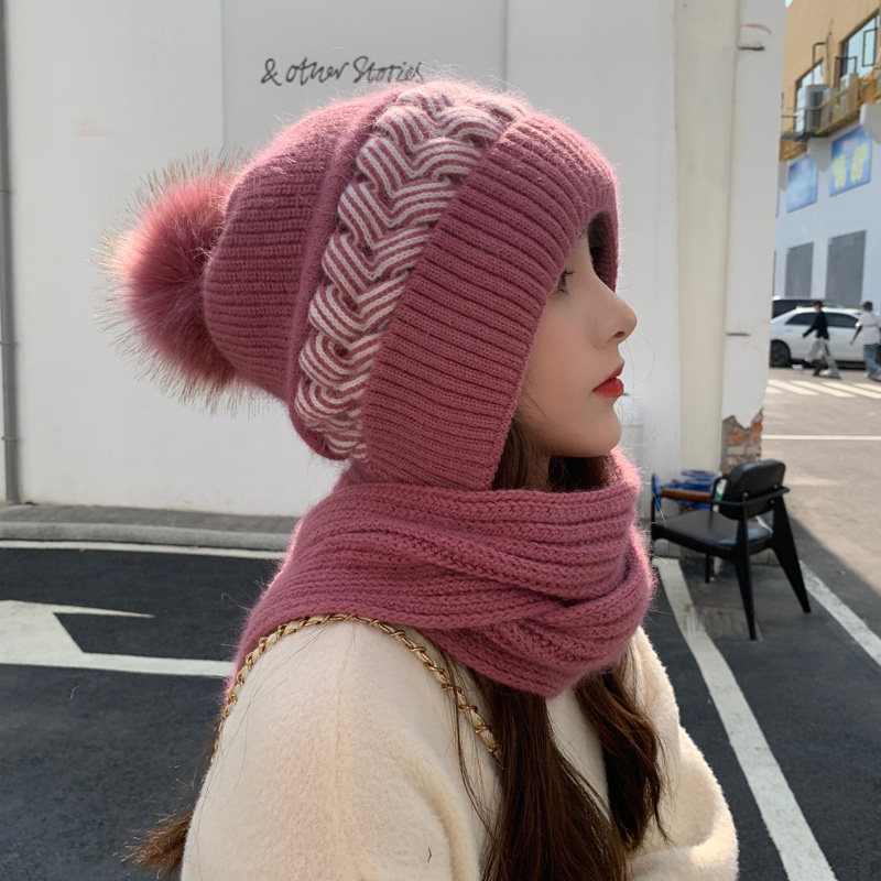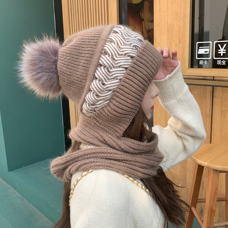 【兔毛混紡超暖毛帽】【圍巾一體式】超大包裹感懶人免洗頭秋冬百搭韓版可愛連圍巾一體式針織帽女帽
