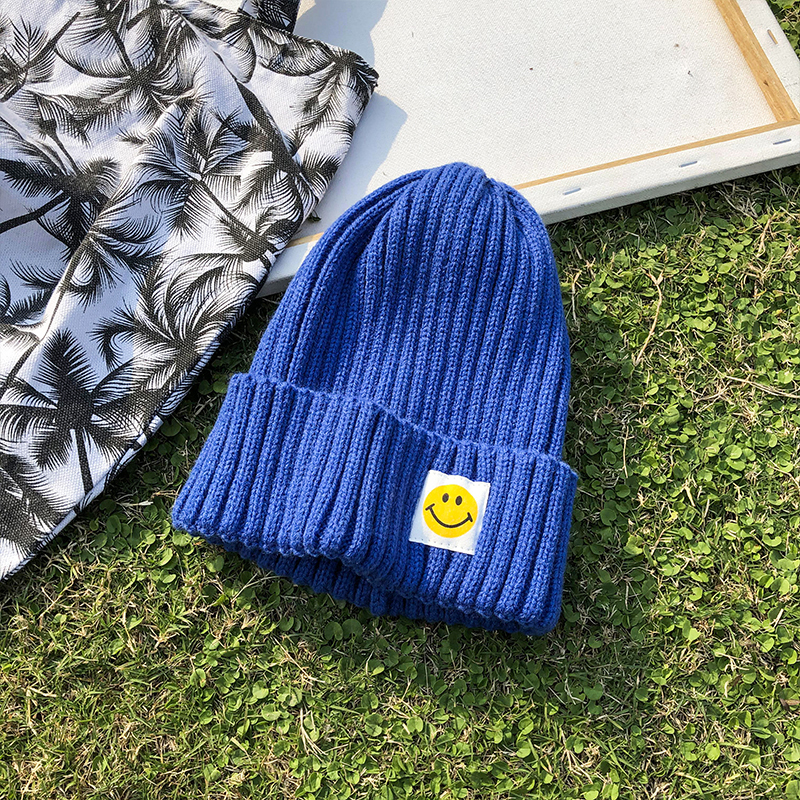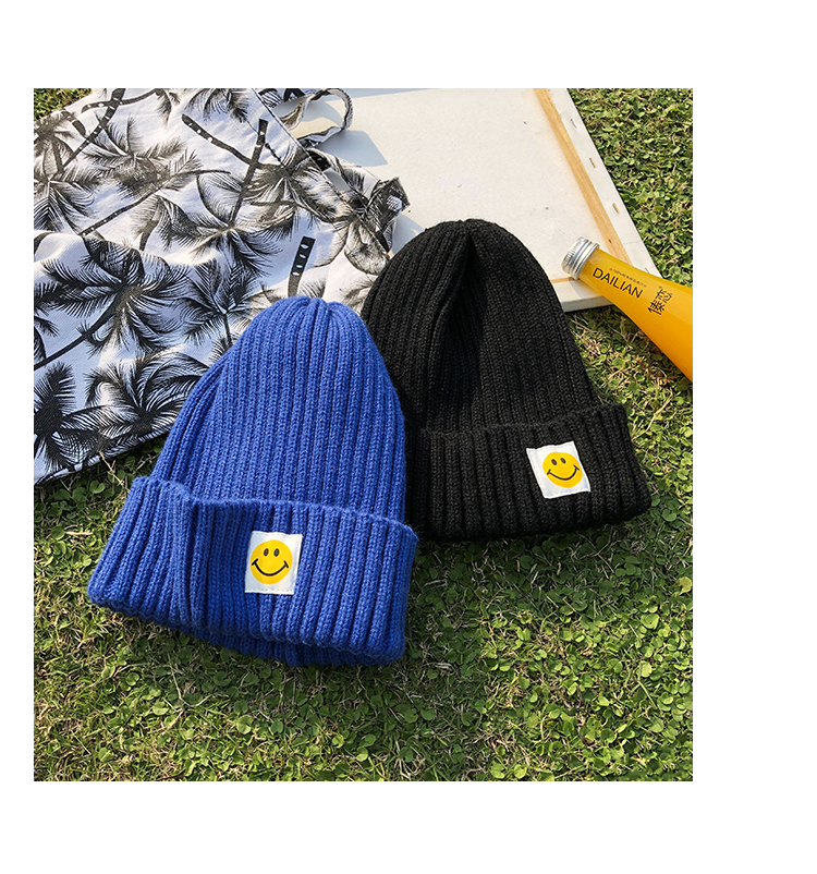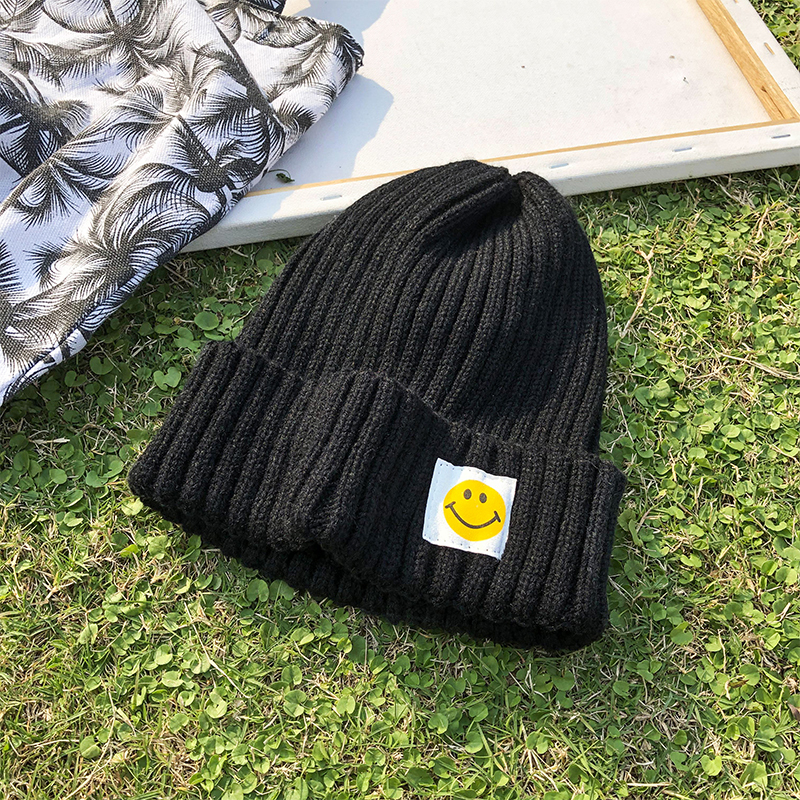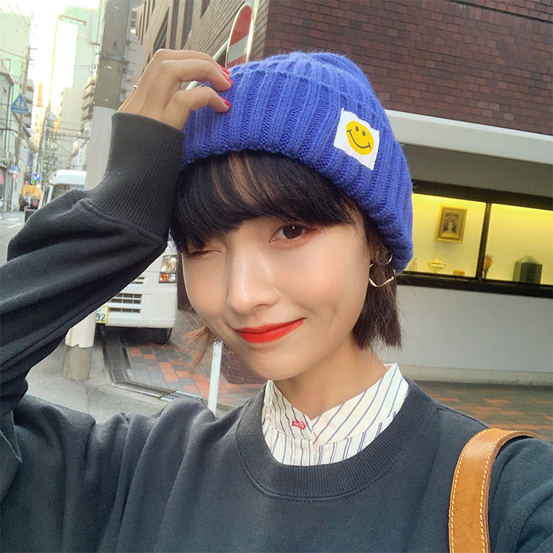 【清爽捲邊笑臉毛線帽】正韓版型網紅笑臉女帽秋冬毛線帽可愛笑臉百搭針織毛帽