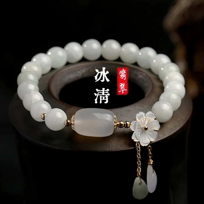 丨名稱丨原創天然翡翠手鏈吊天然貝殼花朵翡翠水滴款 丨材質丨翡翠A貨,蘋果瑪瑙,貝殼,14K包金配件 丨尺寸丨圓珠7.5mm(19顆),蘋果瑪瑙桶珠11*14mm,貝殼花朵約12mm,花瓣數隨機,適合手圍14-16cm