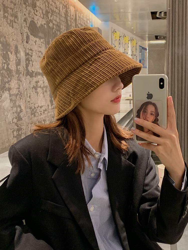 【燈芯絨漁夫帽】日式復古駝色柔軟燈芯絨漁夫帽秋冬出游保暖防曬遮陽韓版潮休閑百搭盆帽漁夫帽 (駝色 M(56-58cm))