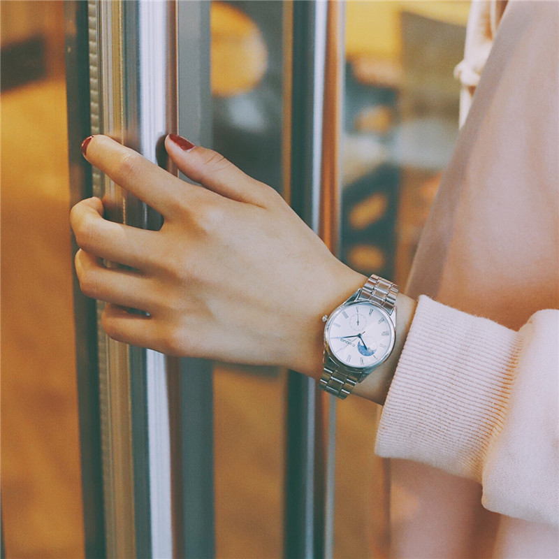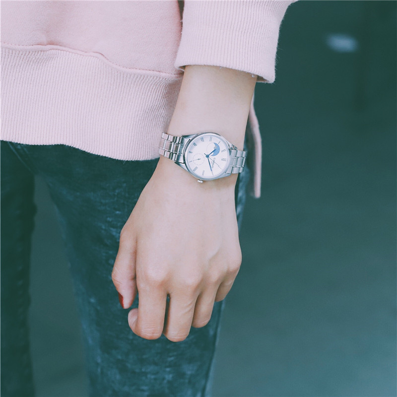 復古文藝氣質日月星空羅馬刻度細鋼帶小資女石英手錶