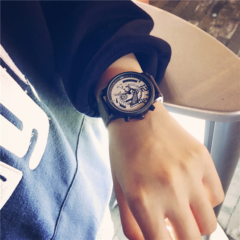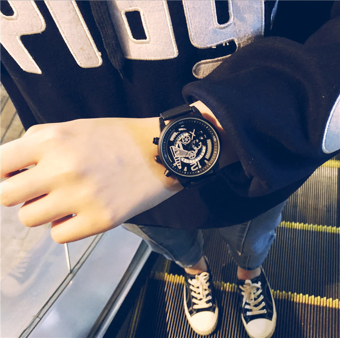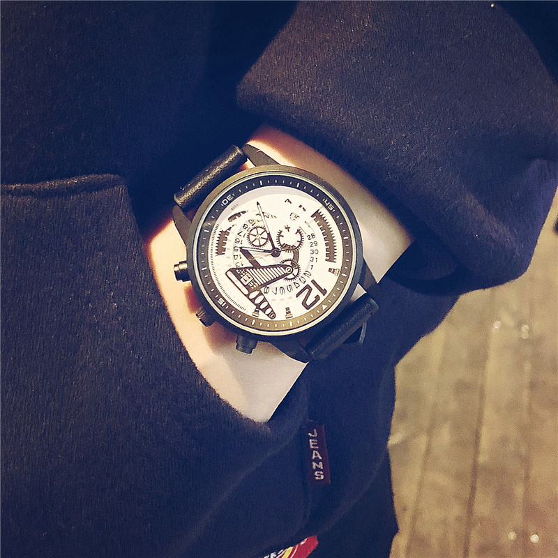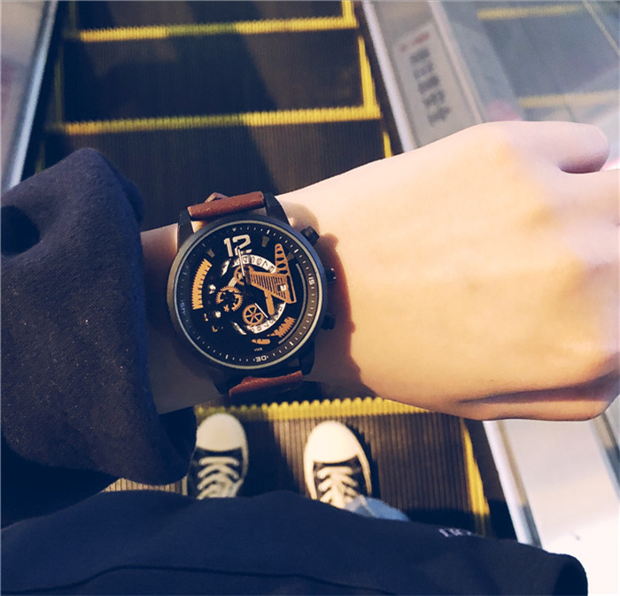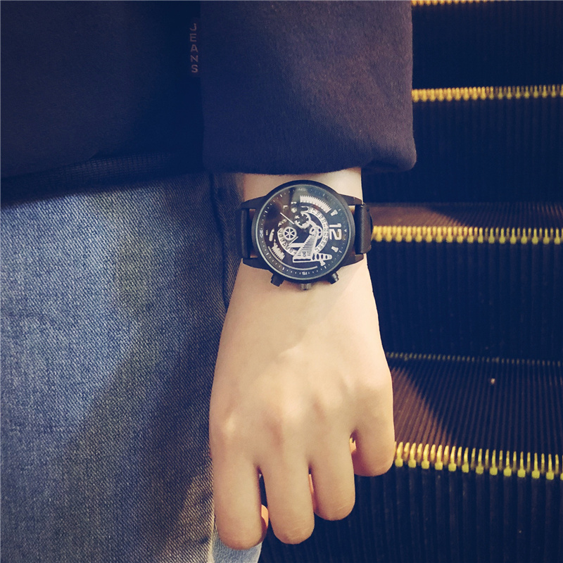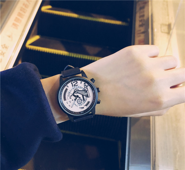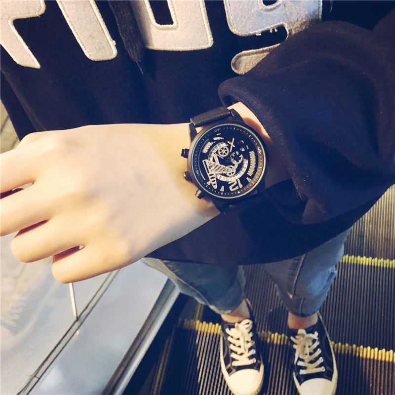 設計師款光學魅影機械感男女中性皮帶石英手錶