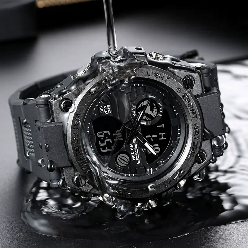 男錶・荒野之息 | 指針液晶雙顯錶盤 | 防震防摔防磁防水 | 日本機芯 | 冷光照明 | 計時碼錶 | 鬧鐘功能 | 星期日曆 | 倒計時 | 日式暗黑風格手錶