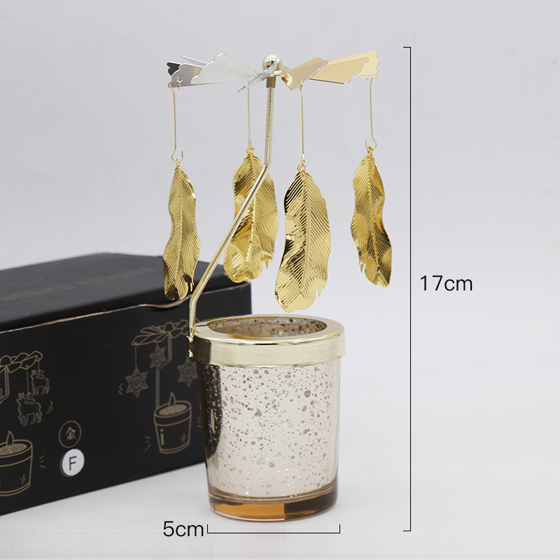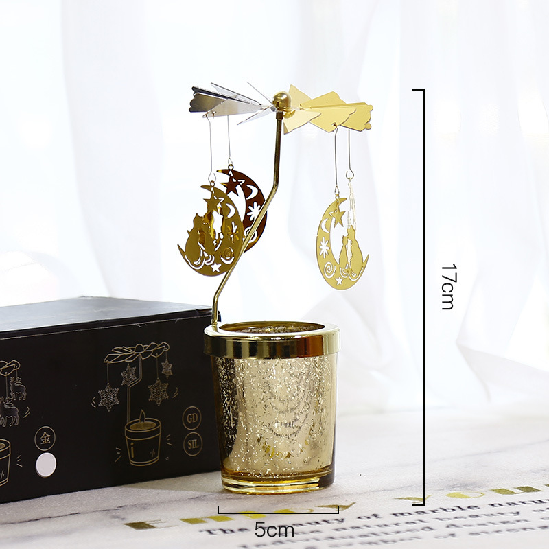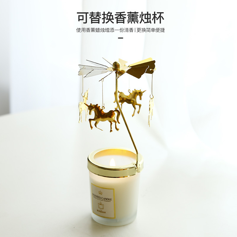 【歐式浪漫自旋轉香氛燭臺】【熱力旋轉】歐式鐵藝鍍金熱力旋轉星空燭光晚餐香氛燭臺