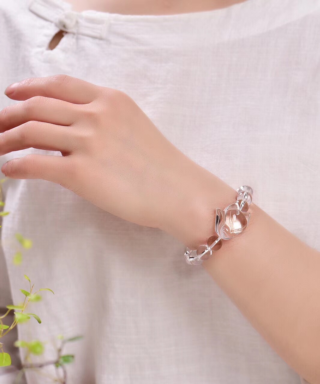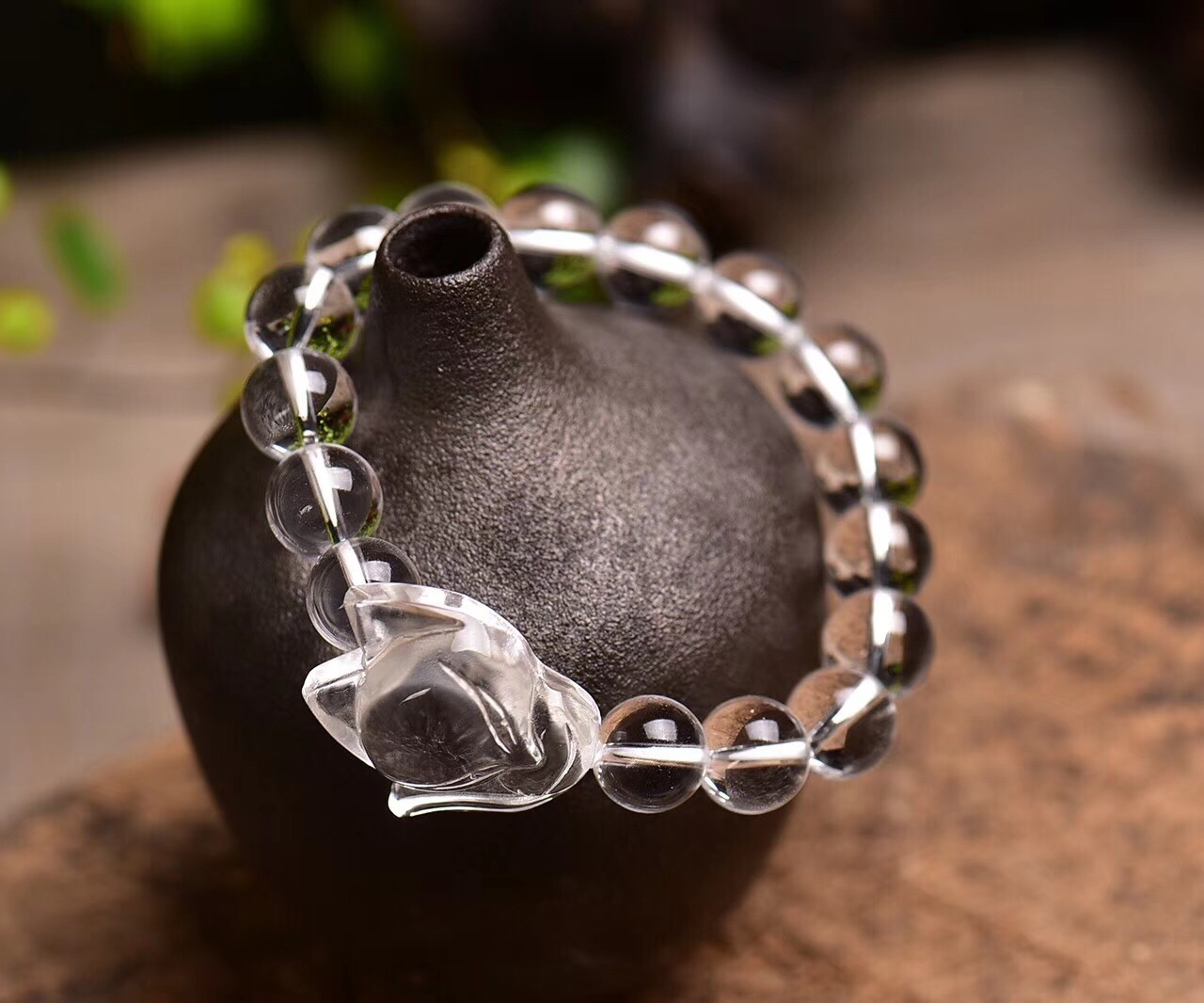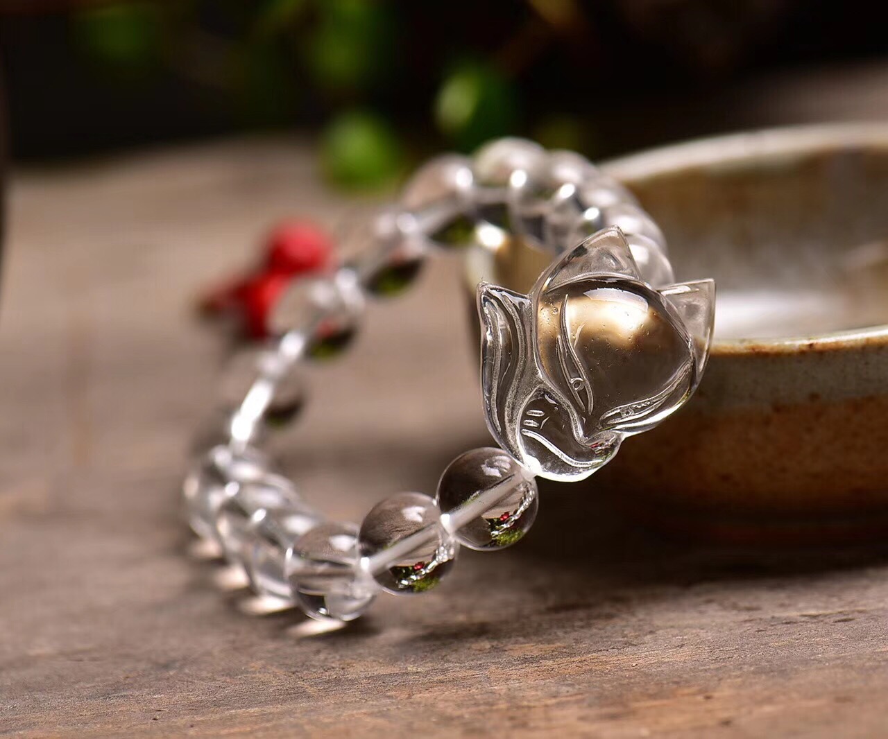 【天然冰透白水晶】【萌狐配飾】收藏級天然白水晶手鍊搭配狐狸萌狐配飾氣質清心女手串手鍊