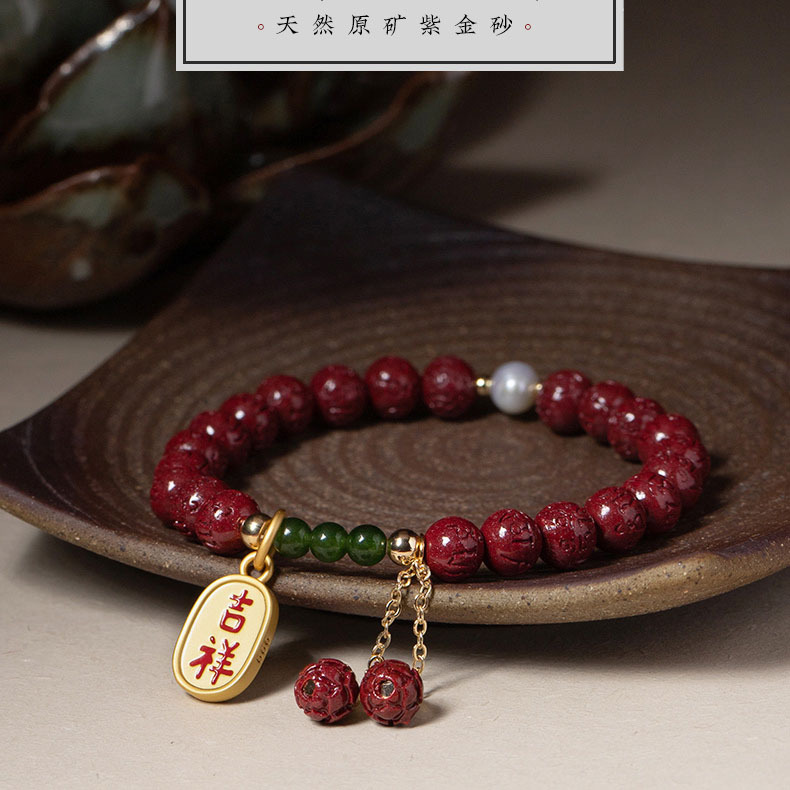 【7A收藏級紫金硃砂】【14K鍍金吉祥如意配飾】設計師款天然帝王紫金硃砂手串吉祥配飾男女開運辟邪手鍊手串