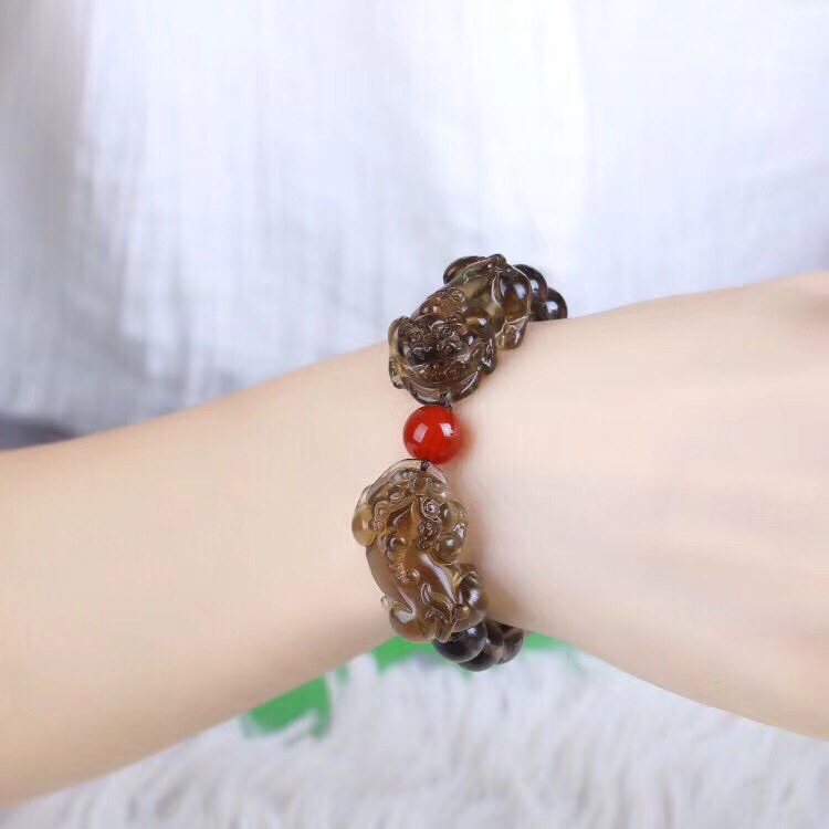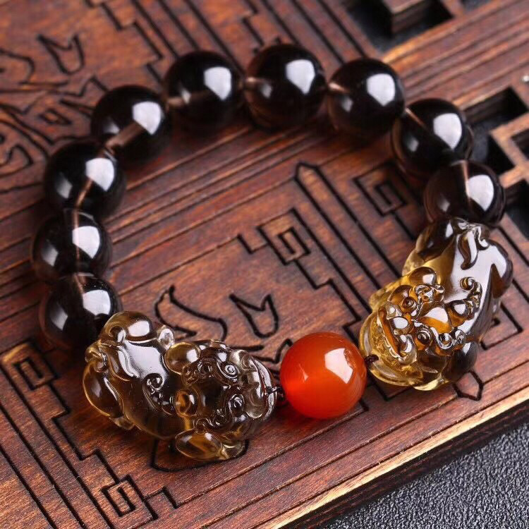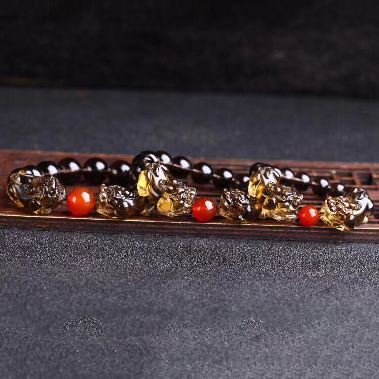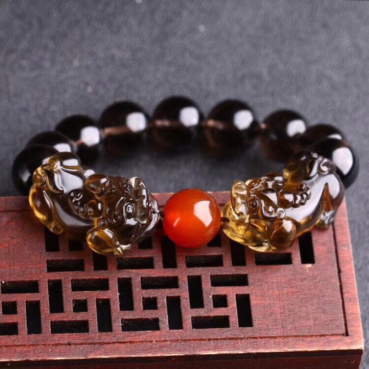 【天然冰種黑曜石】【雙霸王貔貅】天然冰種黑曜石水晶雙貔貅手鍊男女招財護身水晶貔貅手鍊