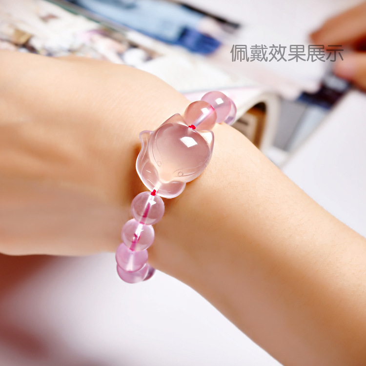 【天然馬達加斯加粉晶】【萌狐配飾】收藏級馬達加斯加通透粉水晶狐狸手鍊大頭萌狐旺姻緣女水晶手鍊