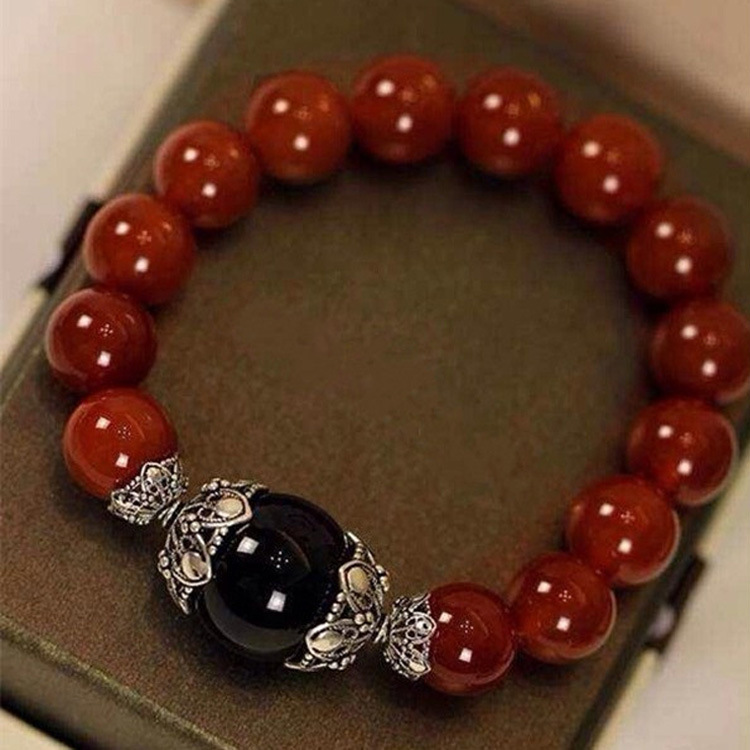 【天然正紅瑪瑙】【開運美顏】天然紅瑪瑙水晶手鍊本命年單圈復古設計款紅瑪瑙女手串手鍊