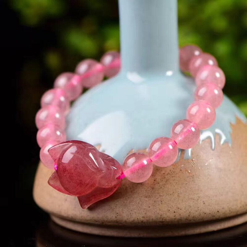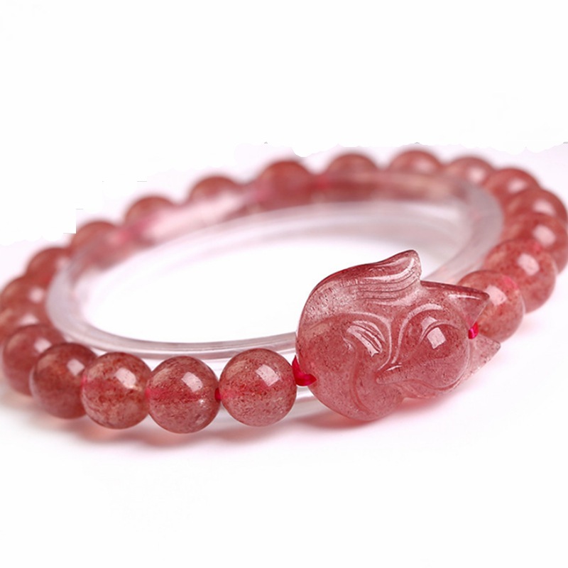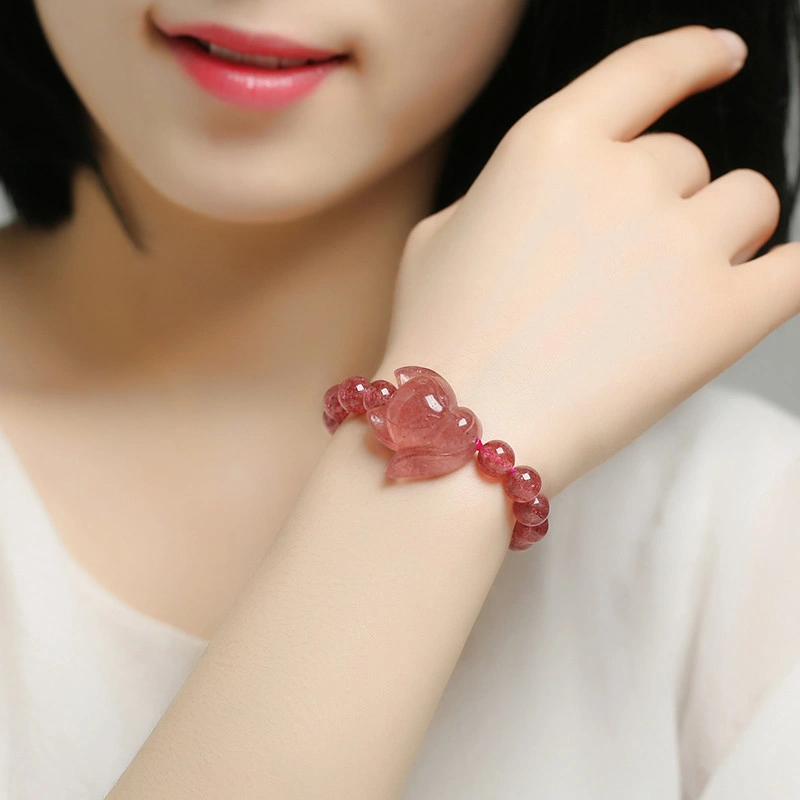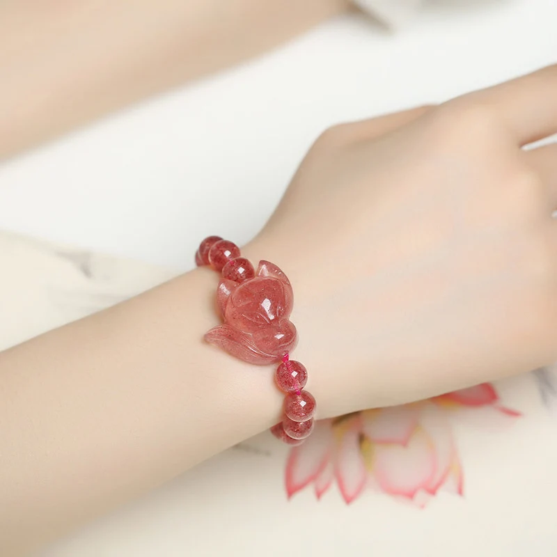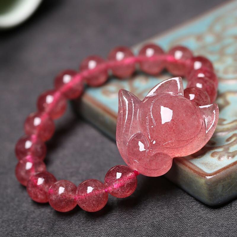 姻緣狐仙 | 天然草莓晶手鍊 | 收藏級濃郁鴿血紅草莓晶狐狸吊墜手鍊旺姻緣女生水晶手串手鍊