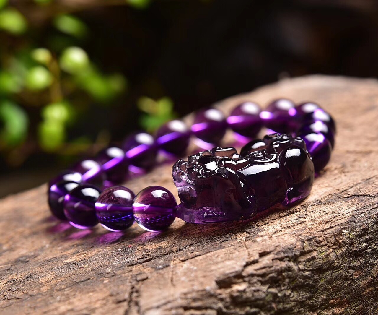 濃郁紫水晶手串搭配紫水晶招財貔貅吊飾男女水晶招財手串手鍊