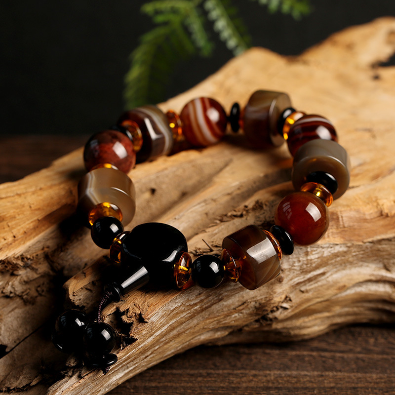 【天然纏絲老瑪瑙】原創設計天然纏絲老瑪瑙算盤珠手串霸氣單圈男款古風開運招財手鍊手串