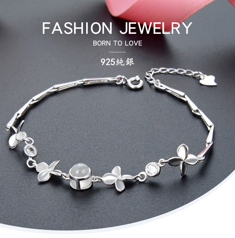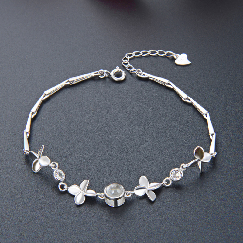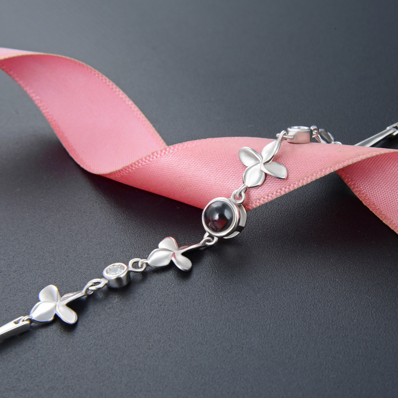 【一百種語言我愛你】【奈米微雕】【925純銀】設計師款奈米微雕投影925純銀鑲鑽女時尚投影手鍊