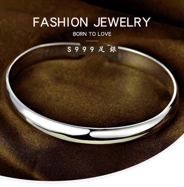 【彼年素光】【999足銀】【光面亮銀】經典設計高級氣質999足銀手工拋光亮銀女時尚開口手環手鐲