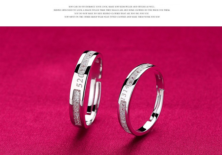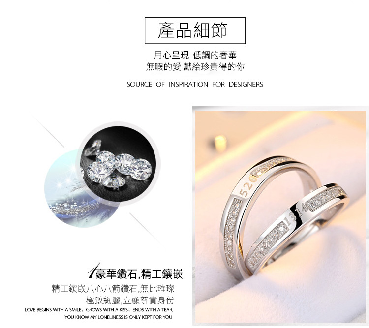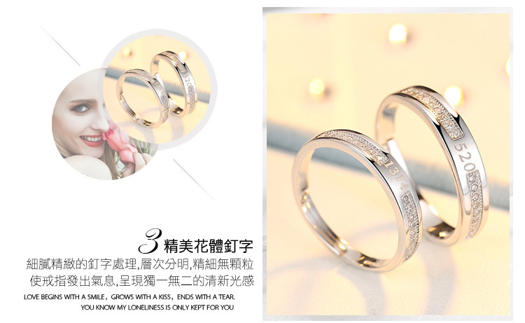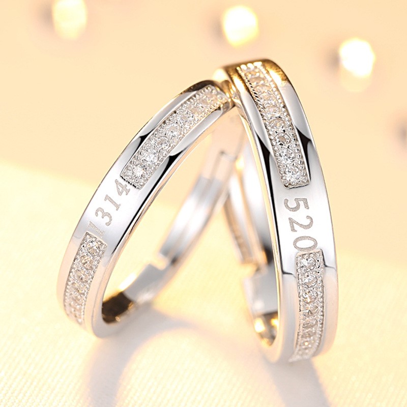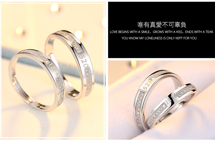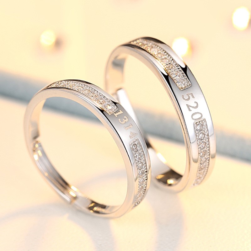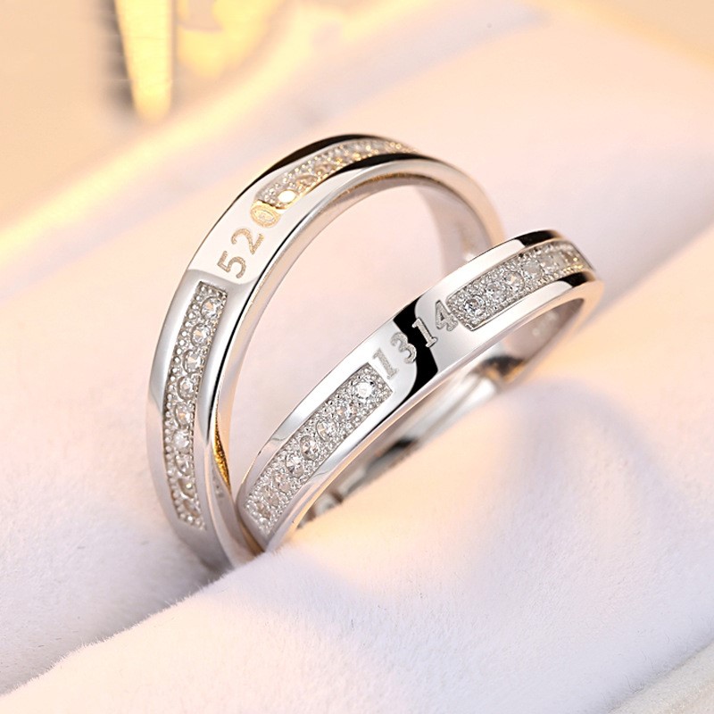 【愛你1314對戒】【S925純銀】原創設計我們的愛情密碼5201314純銀鑲鋯鉆情侶開口對戒