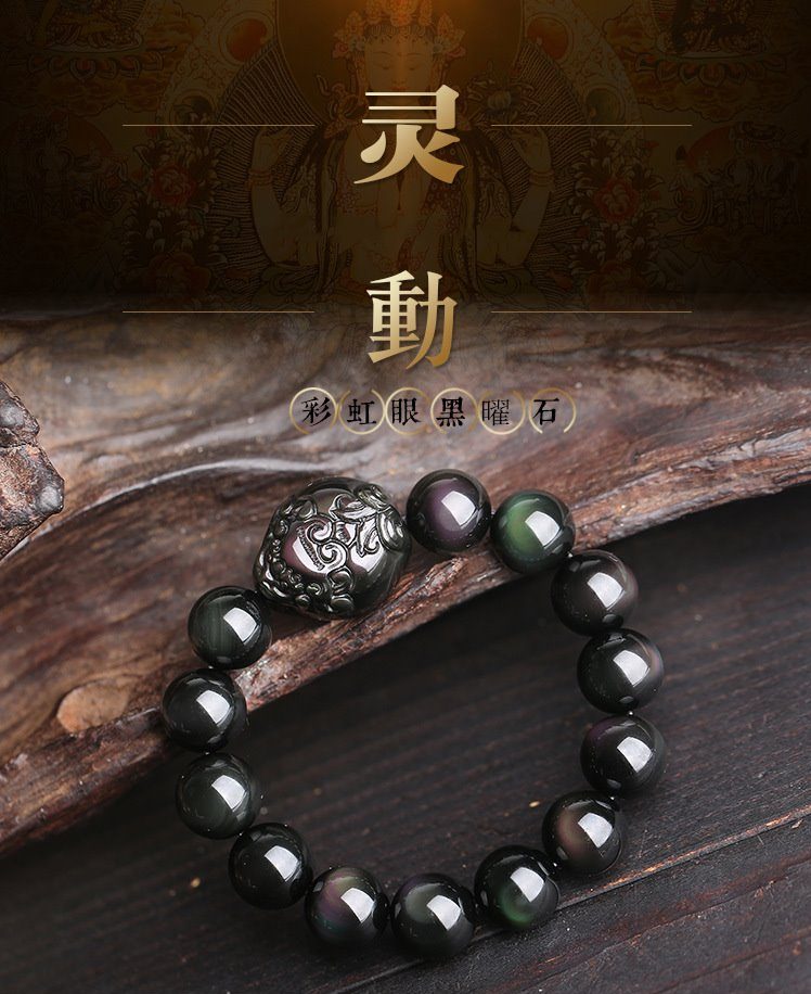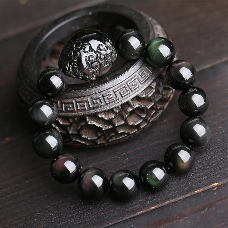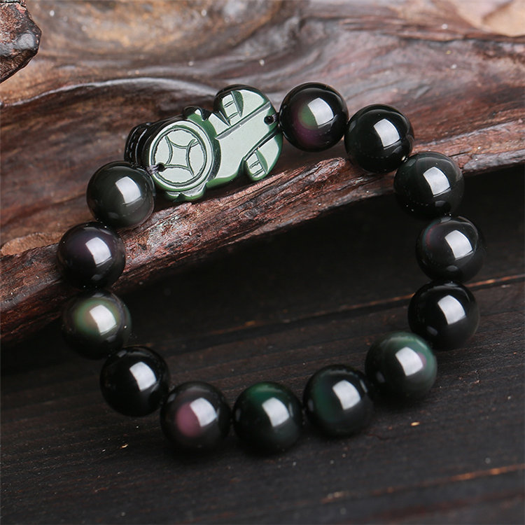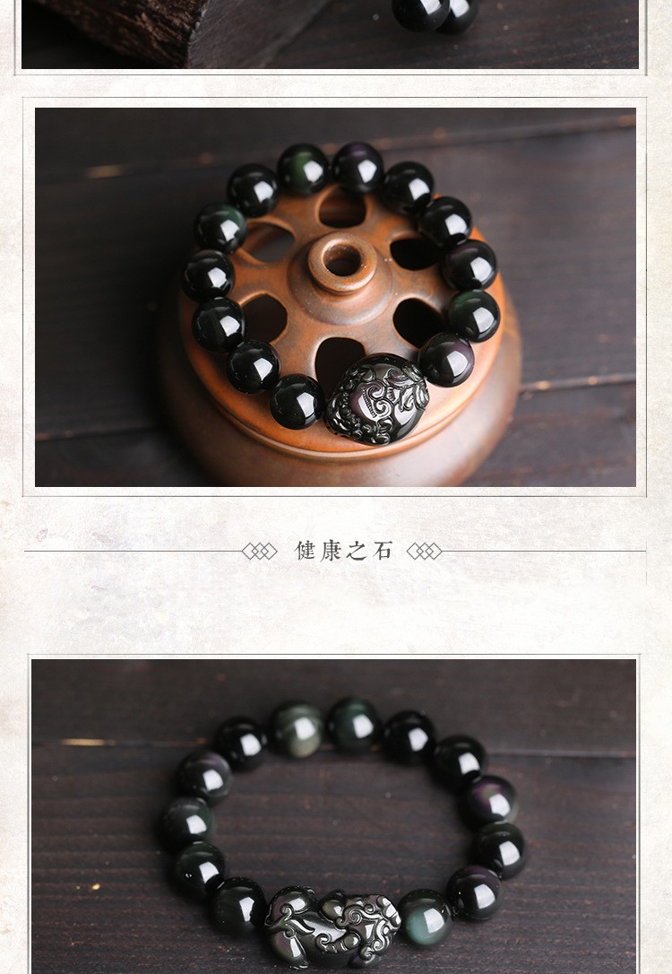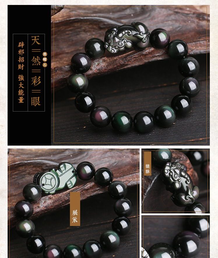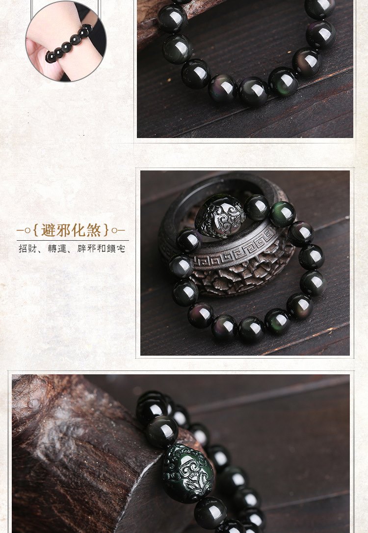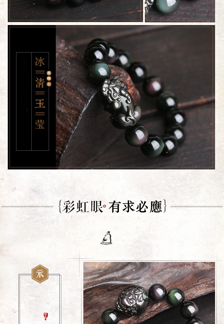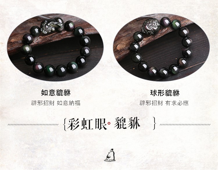 【如意貔貅】【彩虹黑曜石】6A收藏級海克拉火山天然彩虹黑曜石彩虹如意貔貅手鍊